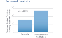 Individuals who learned Transcendental Meditation showed increased creativity in comparison to controls, as measured by a higher level of pictorial originality when measured after five months of practice. They also showed increased creativity, as measured by higher levels of pictorial flexibility and verbal fluency (not charted).